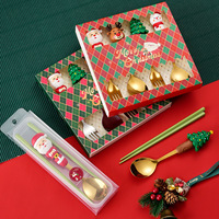 クリスマスステンレス制食器ギフトセット、デザートスプーン、コーヒースプーンギフトセット、クリエイティブ人形、クリスマススプーン